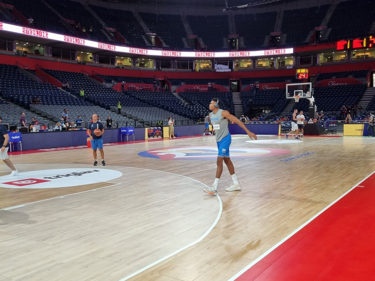 Η Εθνική ομάδα ετοιμάζεται για την μάχη με την Σερβία, με τον Γιάννη Αντετοκούνμπο να έχει ήδη βγει στο παρκέ της Stark Arena για την προθέρμανσή του.