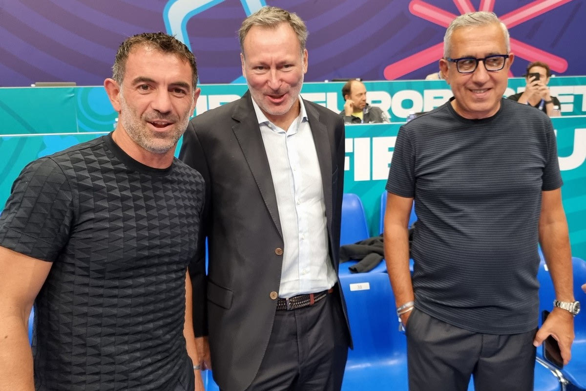 Μαζί του ήταν ο Χρήστος Σταυρόπουλος καθώς επίσης και ο CEO του Basketball Champions League, Πατρίκ Κομνηνός, με τους τρεις άντρες να παίρνουν τη θέση τους για την αναμέτρηση της Εθνικής που θα κρίνει την πρωτιά στον Γ’ όμιλο.