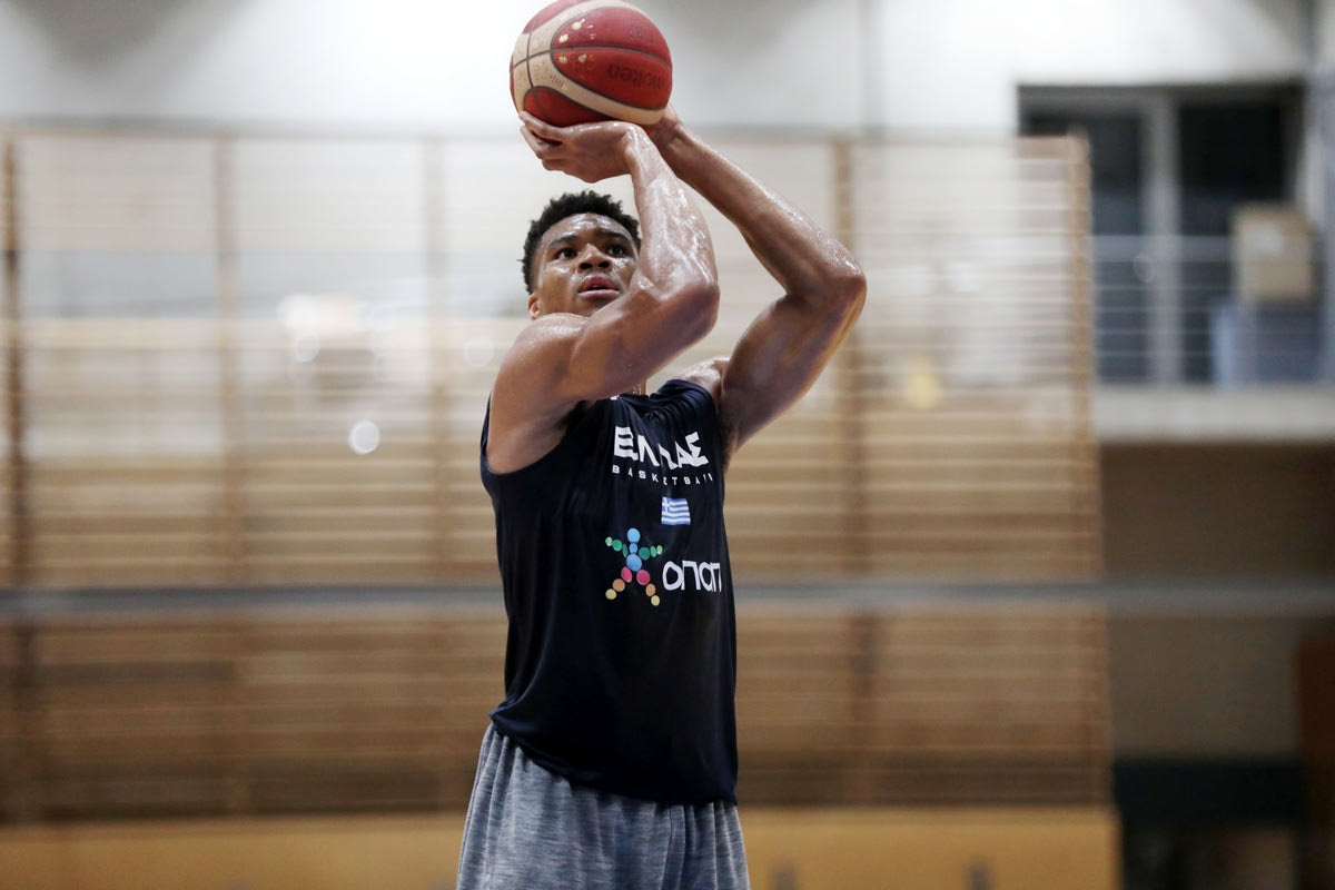Ο Γιάννης Αντετοκούνμπο στην προπόνηση της Εθνικής