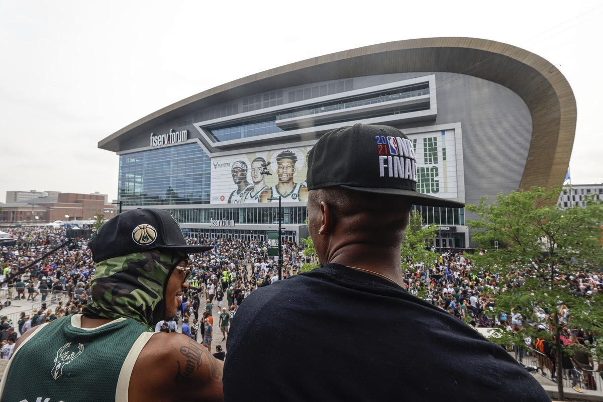Χιλιάδες φίλοι των Μπακς βρέθηκαν έξω από το Fiserv Forum πάνω από μία ώρα πριν την έναρξη του Game 6 των ΝΒΑ Finals ανάμεσα στο Μιλγουόκι και τους Σανς.