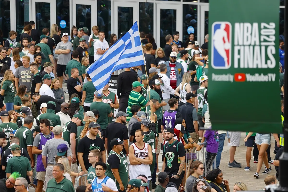 Ελληνικές σημαίες, πατίνια, φωνές, όλα αυτά και ακόμα περισσότερα συνέβαιναν έξω από το Fiserv Forum, με τους φίλους των Μπακς να ζουν ιστορικές στιγμές.