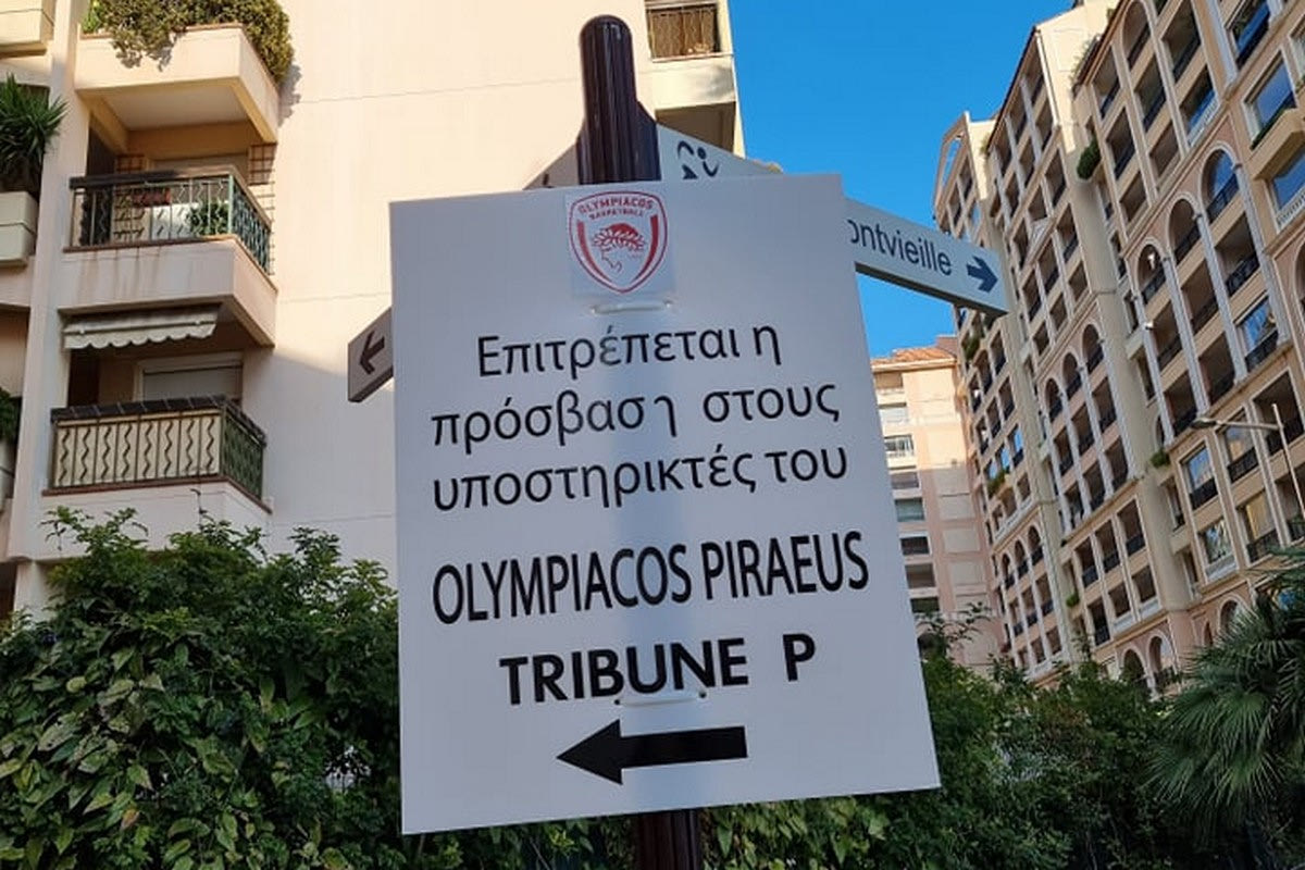 Αποστολή στο Μονακό: Ταμπέλα στα ελληνικά καθοδηγεί τον κόσμο του Ολυμπιακού για το γήπεδο