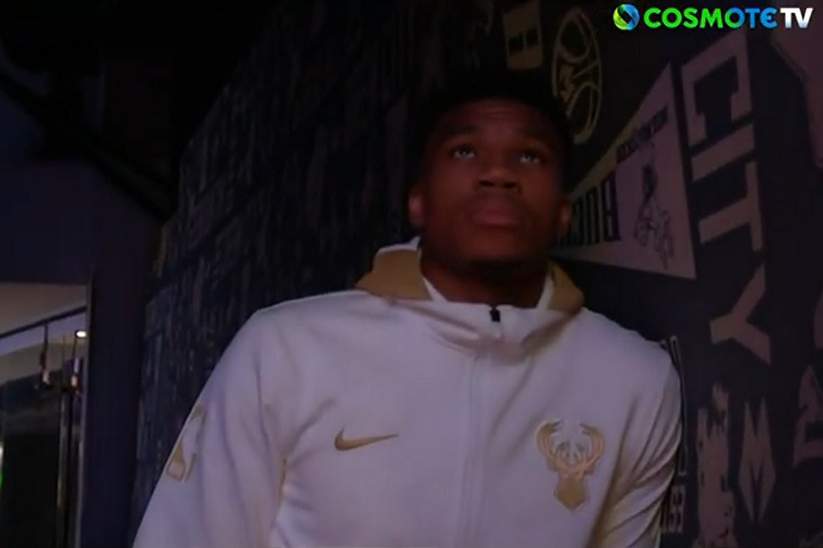 Λίγες στιγμές πριν παραλάβει το δακτυλίδι του, ο Γιάννης είχε μία δυνατή στιγμή παρακολουθώντας τις περσινές καλύτερες στιγμές των Μπακς καθώς καθόταν στην φυσούνα για να περάσει στο παρκέ, με την κάμερα να είναι καρφωμένη πάνω του.