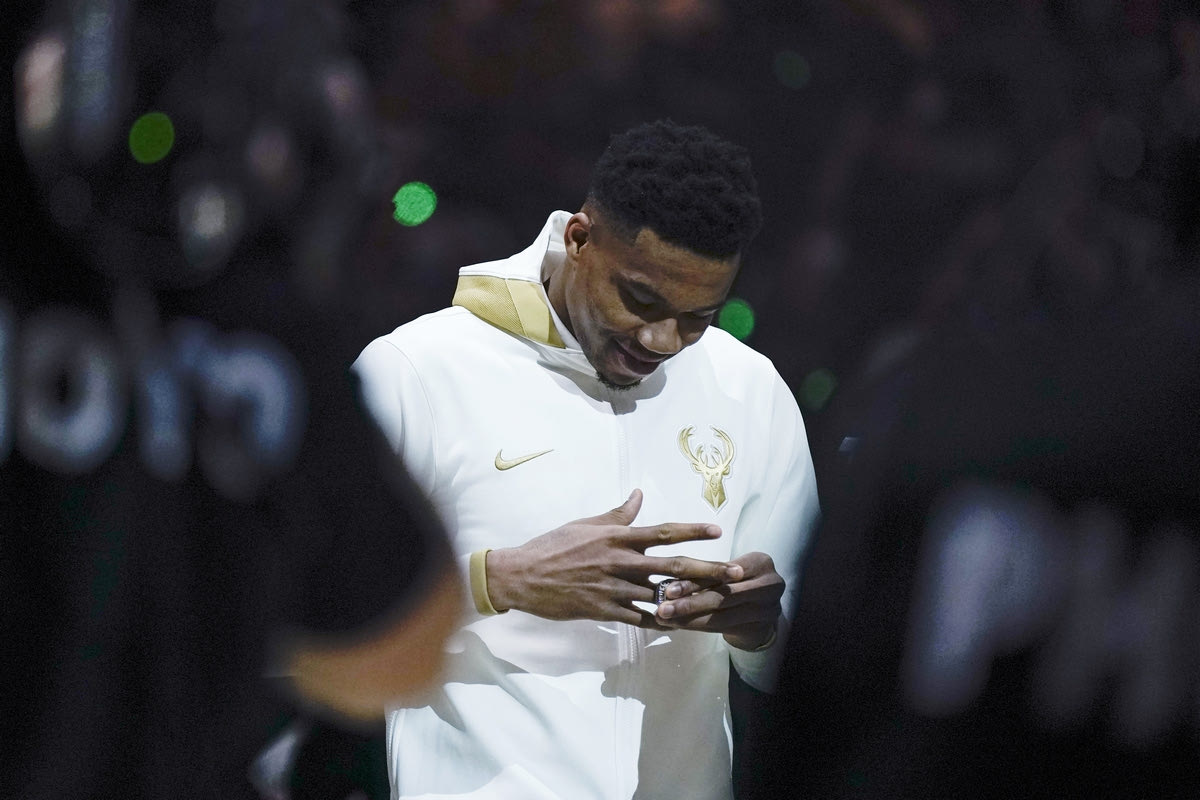 Ο σταρ των Μπακς ήταν το τελευταίο μέλος της ομάδας που εμφανίστηκε στο παρκέ για να παραλάβει το δακτυλίδι του. Και ήταν η στιγμή που το Fiserv Forum δονήθηκε, με τον κόσμο να φωνάζει “MVP” μόλις πέρασε στο παρκέ.