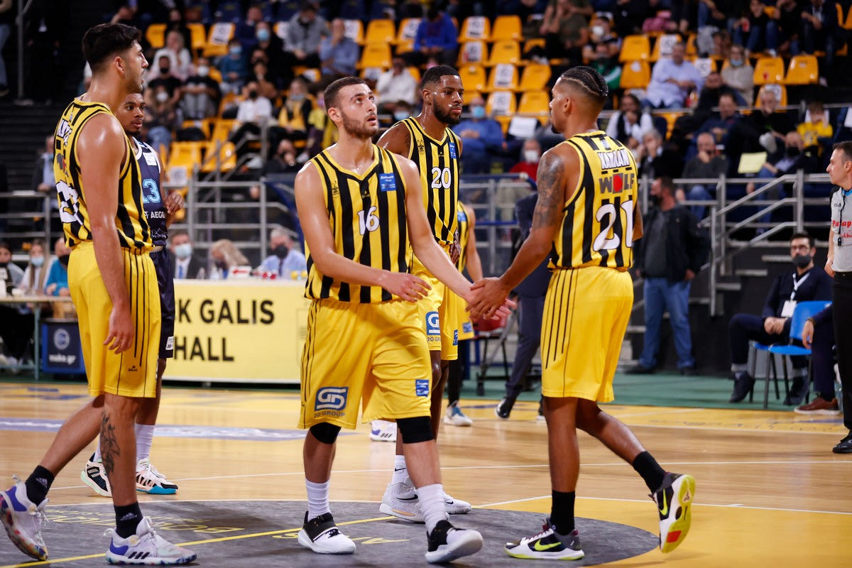 Οι παίκτες του Άρη στο παιχνίδι με τον Κολοσσό Photo Credits: Intime Sports