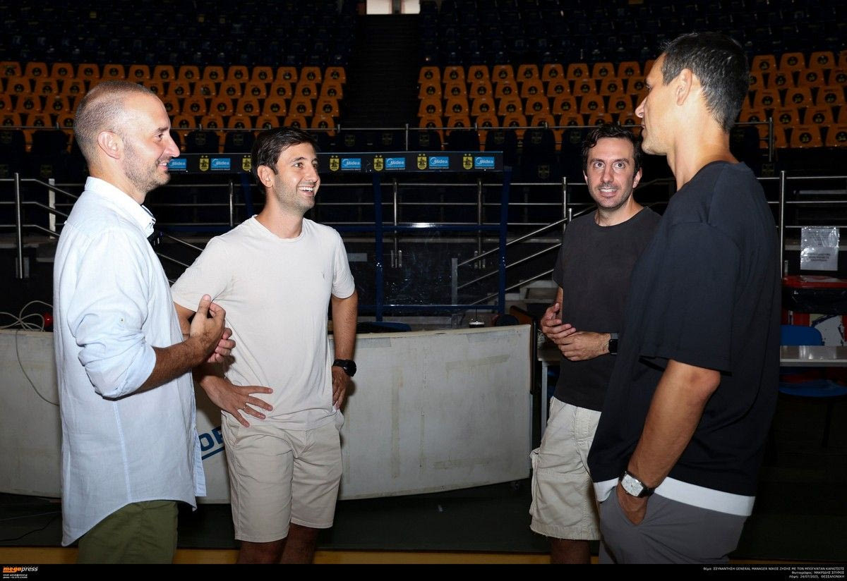 Ο νέος προπονητής των κιτρινόμαυρων είχε τετ α τετ με τον διευθύνοντα σύμβουλο της ΚΑΕ, Αγαπητό Διακογιάννη, τον επιχειρησιακό διευθυντή, Βύρωνα Αντωνιάδη, ενώ μαζί του ξεναγήθηκε στους χώρους του γηπέδου και η συζυγός του.