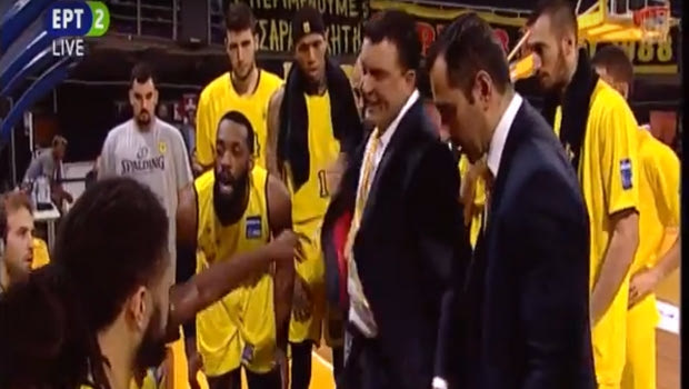 Μετά από ένα λάθος σε επαναφορά για την ομάδα του ο Έλληνας προπονητής πήρε τάιμ άουτ και άρχισε να κάνει παρατηρήσεις σε έντονο ύφος στον Δημήτρη Βεργίνη, ενώ ζήτησε τον λόγο και από τον Νταλό, ο οποίος σήκωσε το χέρι του για να τον ηρεμήσει.