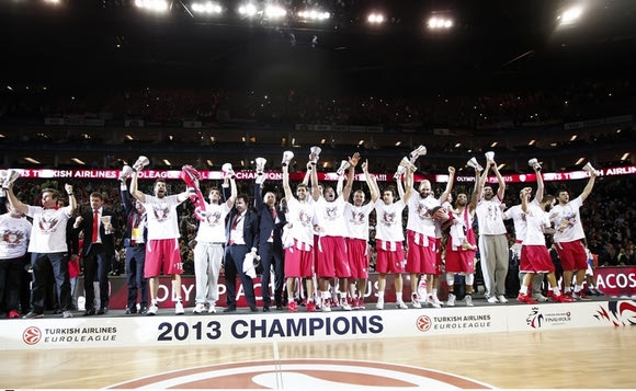 Στον μεγάλο τελικό (12/5/2013), ο Ολυμπιακός κατέκτησε πανάξια το τρίτο Πρωτάθλημα Ευρώπης της ιστορίας του, όντας το δεύτερο σερί, κάνοντας το ιστορικό back-to-back, γράφοντας με αυτόν τον τρόπο ιστορία, καθώς έγινε η μόλις η τρίτη ομάδα (Γιουγκοπλάστικα, Μακάμι) στα χρονικά του Final-Four της Euroleague που πετυχαίνει κάτι παρόμοιο. Και οι Πειραιώτες το κατάφεραν με εντυπωσιακό τρόπο, καθώς αν και βρέθηκαν στο -17 (10-27) στην πρώτη περίοδο, σημείωσαν ολική επαναφορά στα τρία επόμενα δεκάλεπτα, πραγματοποιώντας ένα καταπληκτικό δεύτερο ημίχρονο, φτάνοντας ακόμη και στο +14 (87-73).