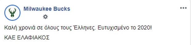 Οι Μπακς μιλάνε πιο συχνά ελληνικά από κάθε άλλη ομάδα χάρη στους Γιάννη και Θανάση Αντετοκούνμπο. Για ακόμα μία χρονιά λοιπόν, μοίρασαν ευχές στα ελληνικά για την αλλαγή του χρόνου, με ένα όμορφο post στο Facebook.