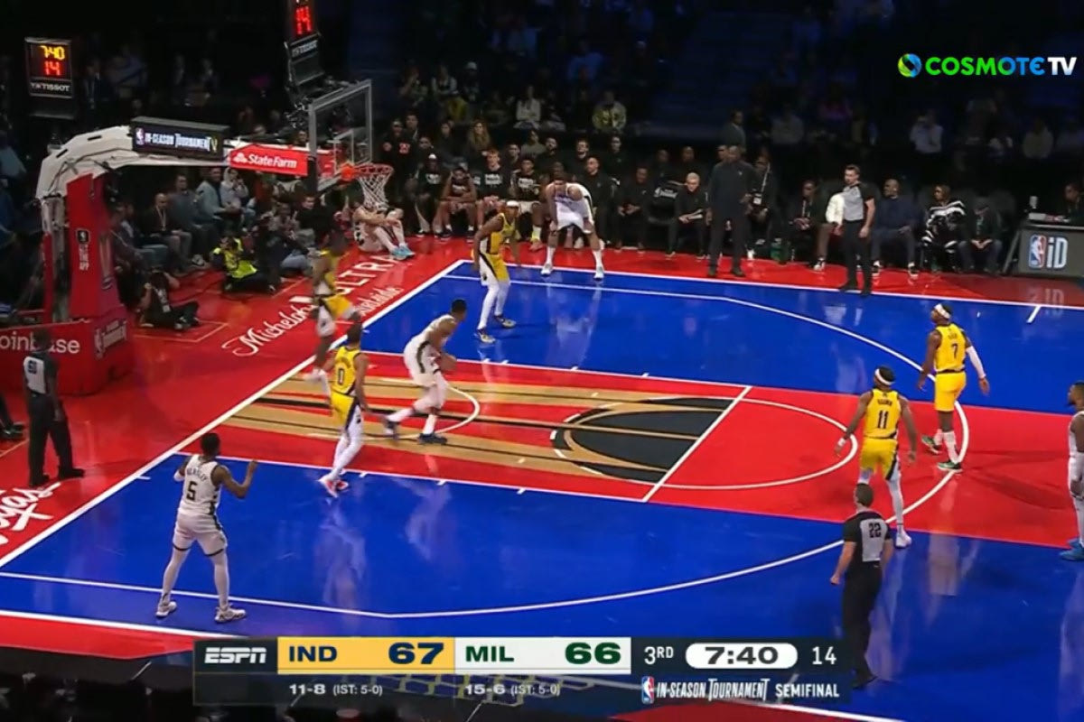 Μηχανή παραγωγής highlight ο Γιάννης Αντετοκούνμπο. Ο Greek Freak βρέθηκε ξανά απέναντι στον Άαρον Νέσμιθ στη διάρκεια του ημιτελικού του του In-Season Tournament ανάμεσα στους Μπακς και τους Πέισερς. Αυτή τη φορά ο σούπερ σταρ των Ελαφιών έκανε μία εντυπωσιακή spin move για να ξεφορτωθεί τον προσωπικό του αντίπαλο και στη συνέχεια σκόραρε ανενόχλητος.