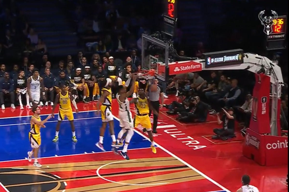 Όταν ο Γιάννης Αντετοκούνμπο βάζει την μπάλα στο παρκέ και ορμάει προς το καλάθι, είναι ασταμάτητος. Αυτό συνέβη και στη φάση που βρέθηκε μπροστά του ο Άαρον Νέσμιθ, στο ξεκίνημα της δεύτερης περιόδου του ημιτελικού του In-Season Tournament ανάμεσα στους Μπακς και τους Πέισερς.