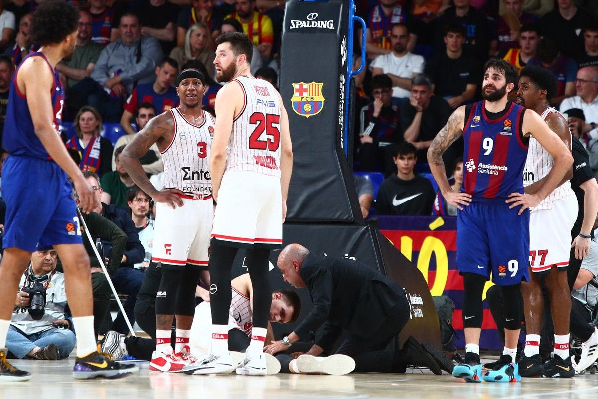 Είχε μία άσχημη προσγείωση στην προσπάθειά του να σκοράρει. Έπεσε έχοντας έντονο πόνο στο γόνατο. Δέχθηκε τις πρώτες βοήθειες και αποχώρησε υποβασταζόμενος στον πάγκο, όπου συνεχίστηκε να δέχεται την φροντίδα του ιατρικού τιμ.