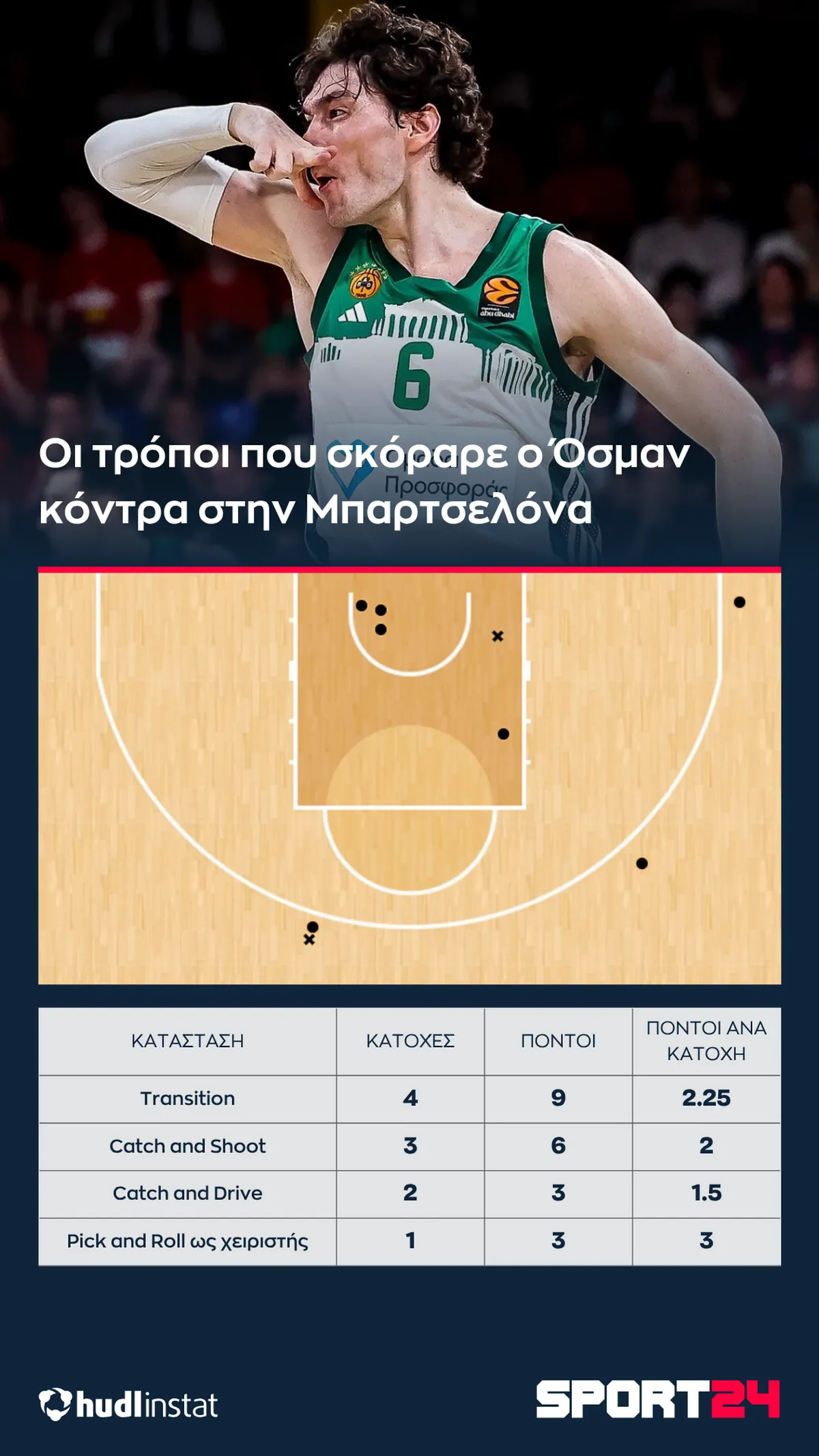 Μπαρτσελόνα – Παναθηναϊκός AKTOR: Οι πόντοι του Όσμαν στο transition, ο καθοριστικός Σλούκας και οι 22 “πράσινοι” πόντοι σε κατάσταση Pick and Roll