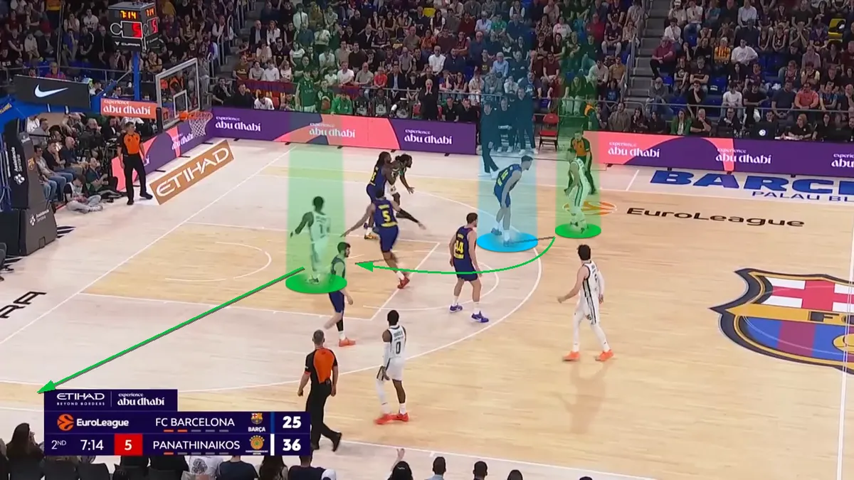 Τα πράγματα είχαν πάρει τον δρόμος τους. Ο Παναθηναϊκός AKTOR έκτοτε σημάδευε σε κατάσταση Pick and Roll την Μπαρτσελόνα. Σύμφωνα με το Hudl Instat, οι “πράσινοι” σημείωσαν συνολικά 22 πόντους σε 17 κατοχές σε κατάσταση Pick and Roll, όπου το σουτ πήρε ο χειριστής.