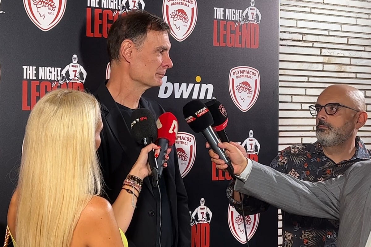 Για το αν είναι καιρός οι άνθρωποι που προσφέρουν στο ελληνικό μπάσκετ να τιμώνται κοντά στην εποχή που τελειώνουν την καριέρα τους: “Είναι κάτι που συνηθίζεται στις ΗΠΑ που σέβονται τους πρωταγωνιστές του αθλήματος, κατά κύριο λόγο τους παίκτες και μετά τους προπονητές. Είναι πρωτοποριακό έτσι όπως το κάνει ο Ολυμπιακός. Είναι καταπληκτικό, ο Βασίλης έχει σταματήσει 2-3 χρόνια τον αθλητισμό από την πλευρά του παίκτη και είναι σημαντικό για παιδιά, έχει αρκετά, και τη γυναίκα του να χαρούν να νιώσουν συγκινησιακά, γιατί αύριο και σήμερα οι στιγμές θα είναι έντονες”.