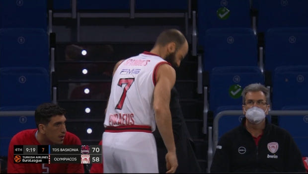 Μπασκόνια – Ολυμπιακός: Ο Σπανούλης τραυματίστηκε στο χέρι και πήγε στον πάγκο