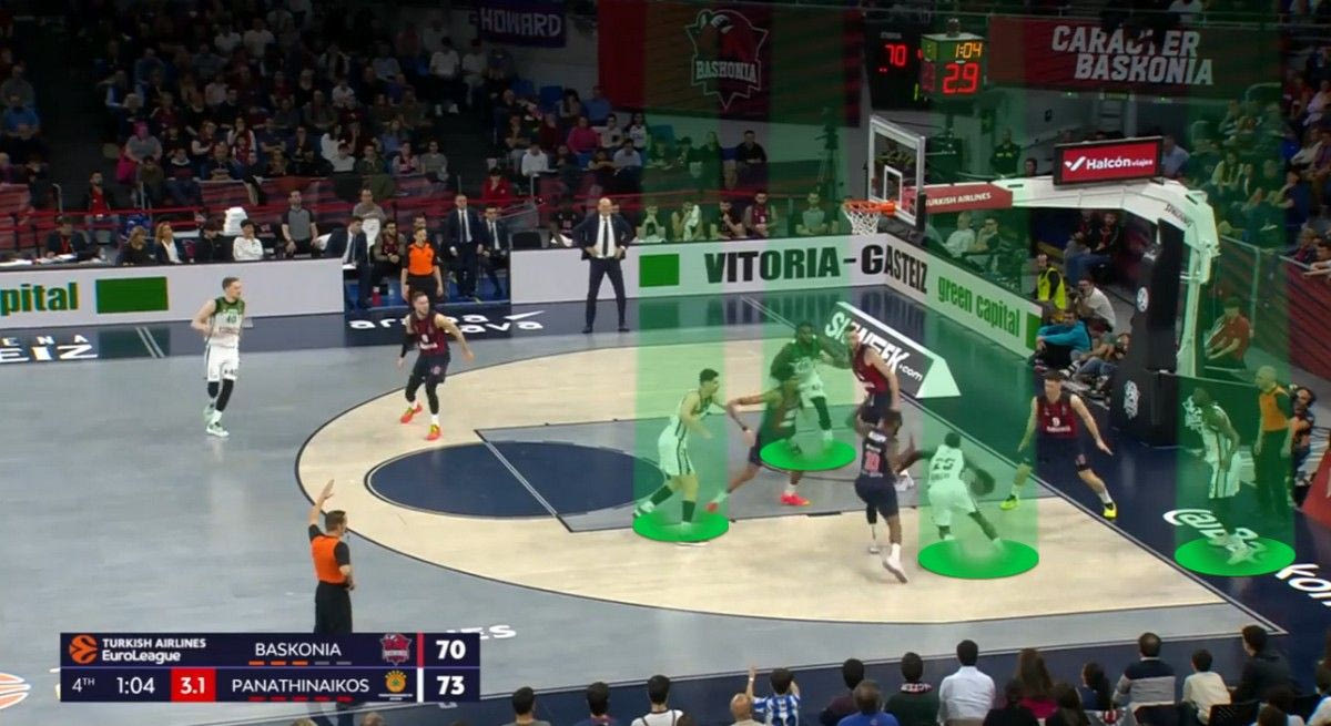 Ο Σεντεκέρσκις ήταν κομβικός σε αυτό το διάστημα. Παίζοντας σε θέση σέντερ, ο Λιθουανός έδωσε ενέργεια στους Βάσκους και ταχύτητα σε καταστάσεις μισού γηπέδου. Ρολάροντας δυνατά στο καλάθι υποχρέωσε σε περιστροφές την άμυνα του Παναθηναϊκού AKTOR (που επίσης αμύνονταν με Hedge Out στο Pick and Roll, κάτι που απαιτεί από τους άλλους παίκτες να κλείνουν χώρους). Αυτό βοήθησε την Μπασκόνια να βρει κάποια σουτ. Τα σουτ μπήκαν, το παιχνίδι γύρισε τούμπα.