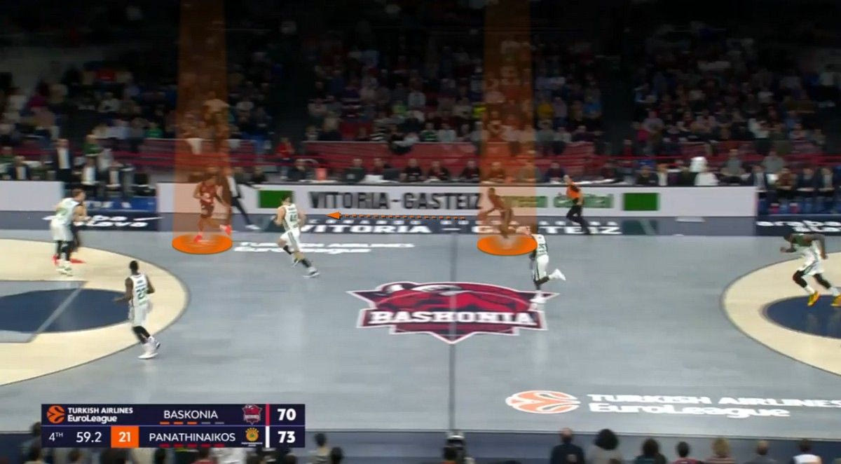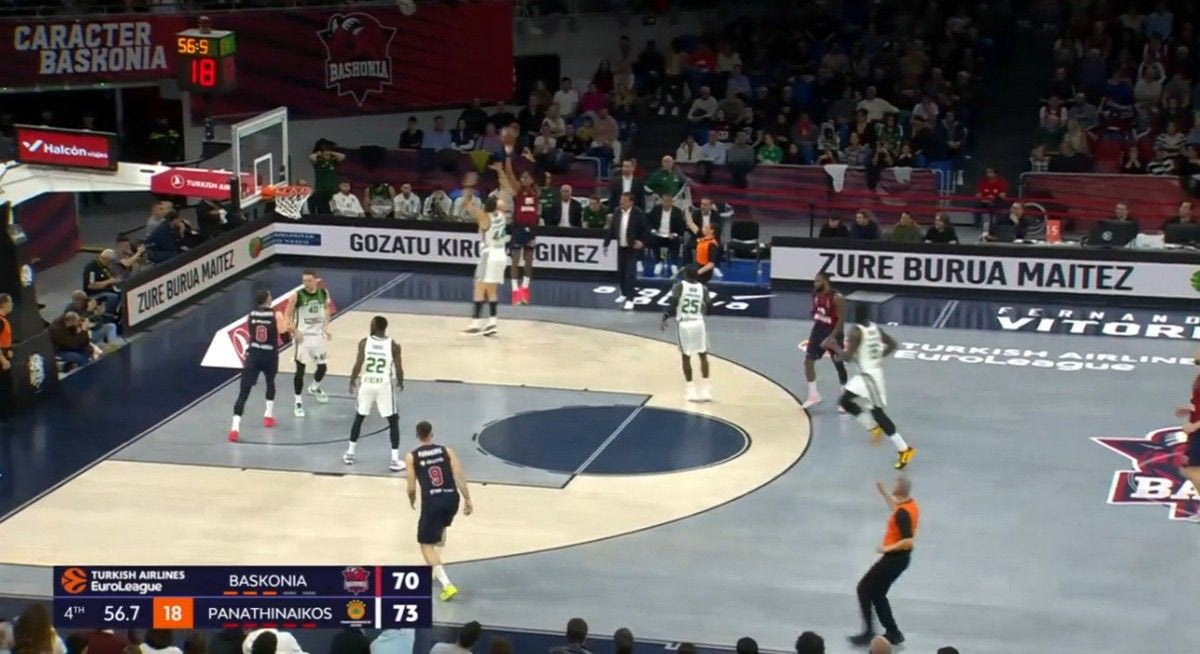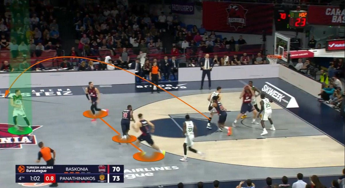 Έχει αναλυθεί ότι το “τριφύλλι” είναι η ομάδα που δέχεται τους περισσότερους πόντους από κάθε στην EuroLeague στο ανοιχτό γήπεδο (11.4 ανά αγώνα). Για τρία δεκάλεπτα έκανε καλή δουλειά κόντρα στην Μπασκόνια, δεχόμενος μόλις 4 πόντους σε τέτοια κατάσταση. Στο τελευταίο 6λεπτο όμως δέχθηκε 7 πόντους στο ανοιχτό γήπεδο, όλους από τον Μονέκε. Ο φόργουορντ των Βάσκων εκμεταλλεύτηκε την αδυναμία των “πράσινων” στο αμυντικό τρανζίσιον (μετάφραση: η μετάβαση από την επίθεση στην άμυνα), κάνοντας σπριντ μετά από κάθε αμυντικό ριμπάουντ.