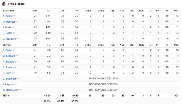 Ο Ντάμιαν Λίλαρντ και η παρέα του έπαιξαν όμορφο και ομαδικό μπάσκετ και έχοντας 8 παίκτες με διψήφιο αριθμό πόντων πήραν μία δίκαιη νίκη – κι ας έχασαν διαφορά 15 πόντων στην τέταρτη περίοδο – κόντρα στο Τορόντο, το οποίο πάντως παρατάχθηκε χωρίς τον Κάιλ Λόουρι (ξεκούραση) και τον τραυματία Γιόνας Βαλαντσιούνας.