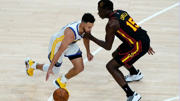 Ο Στεφ Κάρι απέναντι στον Κλιντ Καπελά των Χοκς ⓒ 2021 John Bazemore/Associated Press