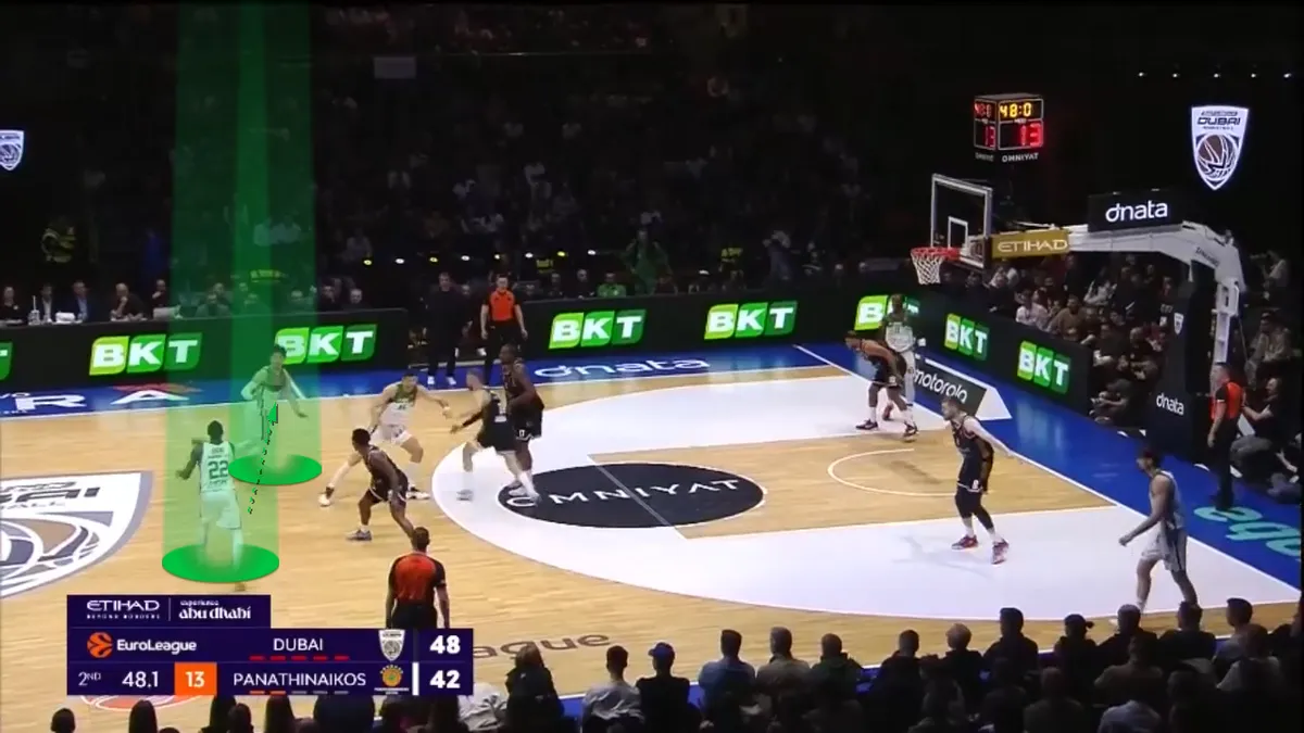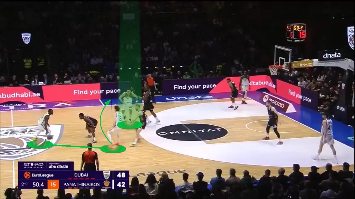 Τα plays με τον Όσμαν σε θέση σκρινέρ – όπου είτε κάνει Pick and Pop, είτε παίρνει Flare screen είτε κάνει Ghost Screen (μετάφραση: Φάση όπου δεν ακουμπάει τον αντίπαλο και βγαίνει στο τρίποντο) υπάρχουν πολλά στον φετινό Παναθηναϊκό AKTOR. Και – όπως θα φανεί και στην συνέχεια του κειμένου – είναι πάντα χρήσιμα.