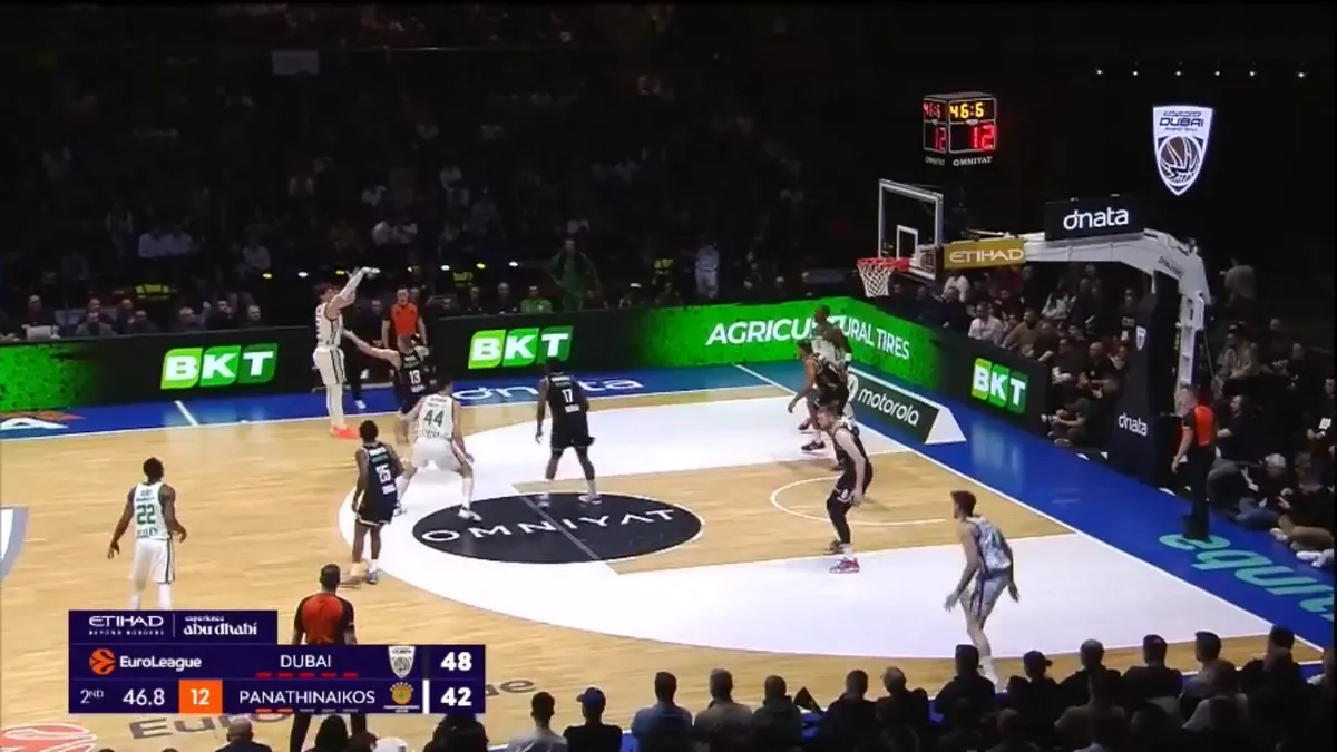Η άμυνα της Dubai BC κολλάει προσωρινά και ο Ναν βρίσκει διάδρομο, ενώ ο Όσμαν βγαίνει στην περιφέρεια.