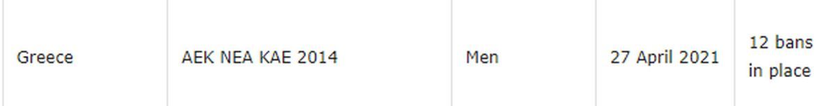 Η FIBA ανακοίνωσε δύο ακόμα ban για την ΑΕΚ, ανεβάζοντας τον συνολικό αριθμό στα 12. Δεν μπορεί να κάνει μεταγραφές από το εξωτερικό η "Ένωση" μέχρι να τα διευθετήσει.