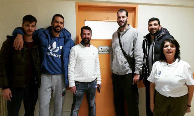 Ο πρόεδρος του Φάρου Κερατσινίου, Βαγγέλης Τσάπας, και οι Μιχάλης Κακιούζης, Βαγγέλης Καράμπουλας, Μάριος Μπατής και Γιώργος Κουντουράς βρέθηκαν σήμερα (11/12) στο νοσοκομείο "Μεταξά" στον Πειραιά κι έδωσαν αίμα.