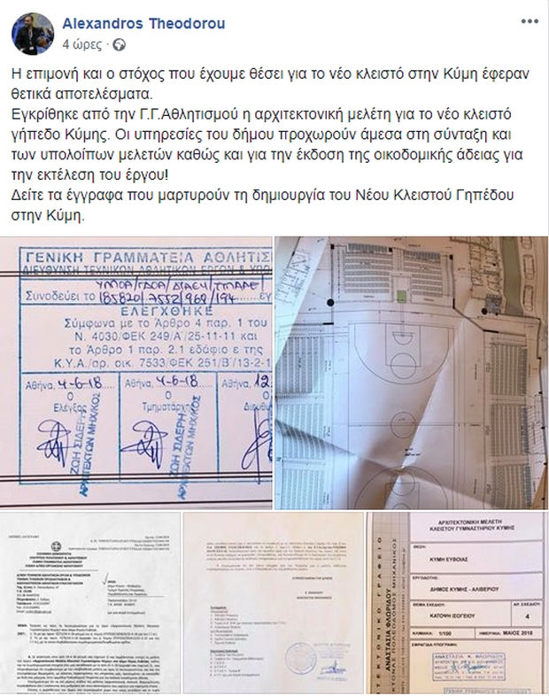 Πολύ πιο κοντά στην ανέγερση του νέου γηπέδου στην Κύμη βρίσκεται ο ευβοϊκός σύλλογος. Ο πρόεδρος των “μπλε”, Αλέξανδρος Θεοδώρου, ενημέρωσε μέσω του προσωπικού του λογαριασμού στο Facebook πως εγκρίθηκε από τη ΓΓΑ η αρχιτεκτονική μελέτη για το νέο γήπεδο στην πόλη.