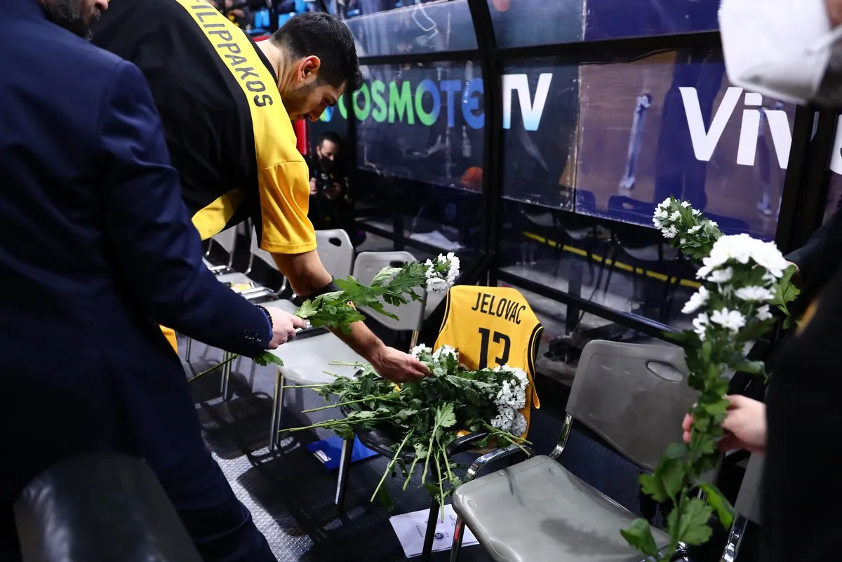 Επιπλέον, πριν από την έναρξη της αναμέτρησης, παίκτες και προπονητικό επιτελείο άφησαν λουλούδια στη θέση που καθόταν ο Στέβαν Γέλοβατς στον πάγκο της ΑΕΚ.