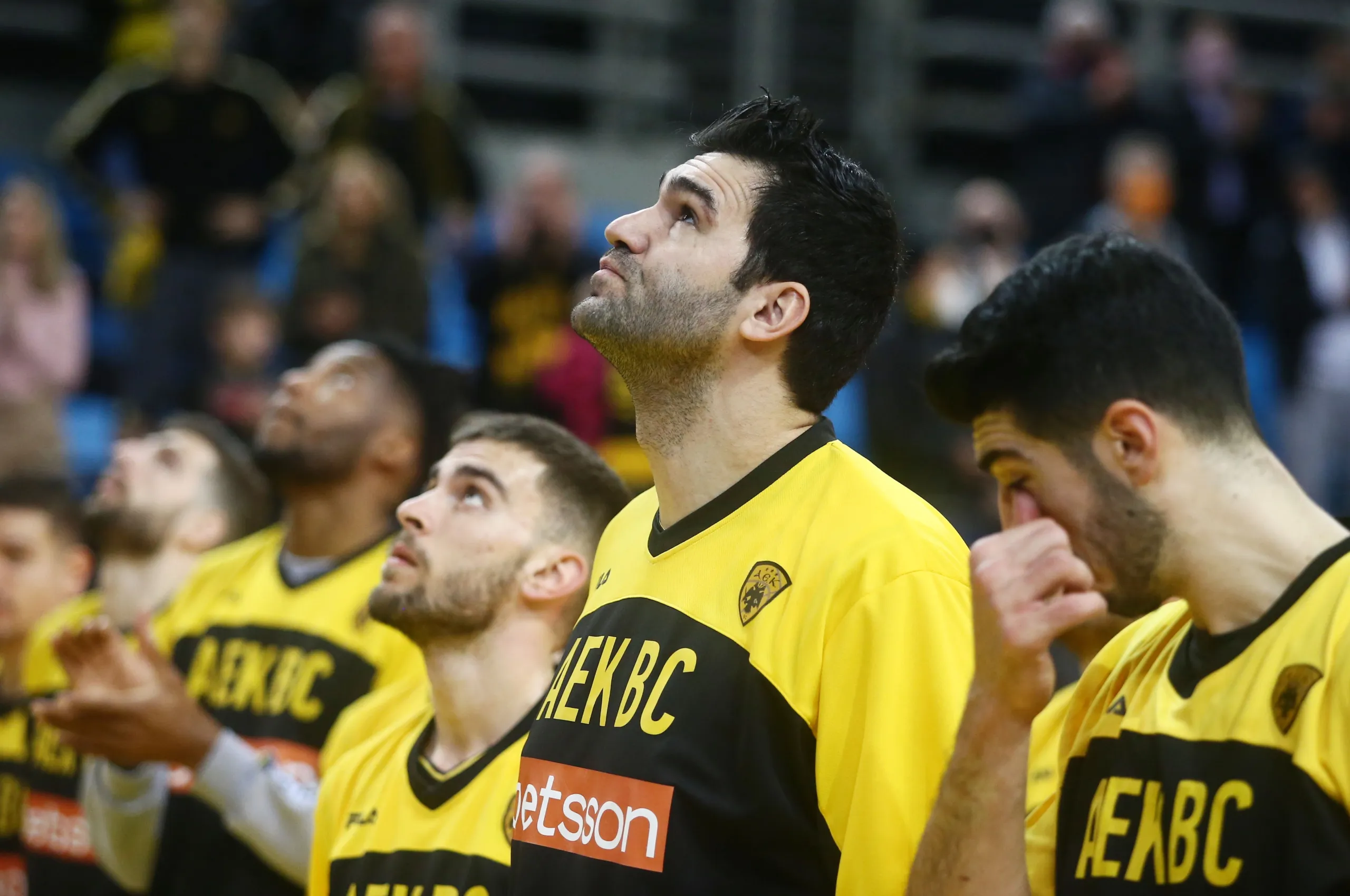 Σε μία άκρως συγκινητική στιγμή στο κλειστό των Άνω Λιοσίων, η φανέλα του Στέβαν Γέλοβατς βρήκε τη θέση της στον ουρανό του κλειστού, με άπαντες στην ΑΕΚ να ξεσπούν σε δάκρυα αποχαιρετώντας τον συμπαίκτη και φίλο τους.