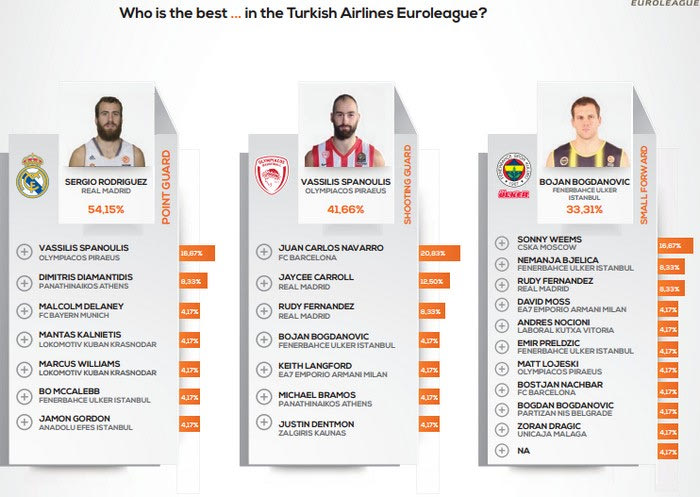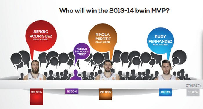 Στην ερώτηση ” ποιος θα αναδειχθεί MVP της σεζόν 2013-2014” κυριάρχησαν απόλυτα οι της Ρεάλ, με τον Σπανούλη… να μπαίνει ανάμεσα τους, για τον ευνόητο λόγο.
