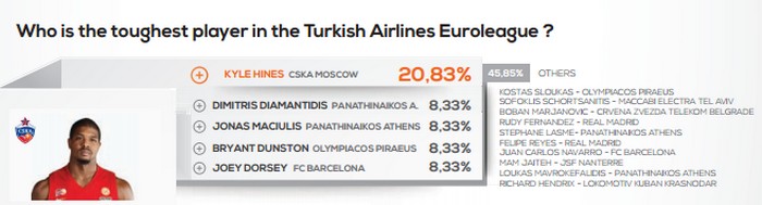 Οι Κάιλ Χάινς και Κιθ Λάνγκφορντ μοιράστηκαν την πρωτιά στη λίστα με τους καλύτερους Αμερικανούς που παίζουν στην Turkish Airlines Euroleague. Είχαν από 25%, με τον Ντέρικ Μπράουν (Λοκομοτίβ Κουμπάν) να ακολουθεί (12.50%) και τους Σόνι Ουίμς (ΤΣΣΚΑ), Μπο ΜακΚάλεμπ (Φενέρμπαχτσε), Μάλκομ Ντιλέινι (Μπάγερν), Σον Τζέιμς (Μακάμπι), Τζαμόν Γκόρντον (Αναντολού Εφές), Τζέρεμι Πάργκο (ΤΣΣΚΑ) και Μπράιαντ Ντάνστον (Ολυμπιακός) να μοιράζονται το υπόλοιπο 37.50%.