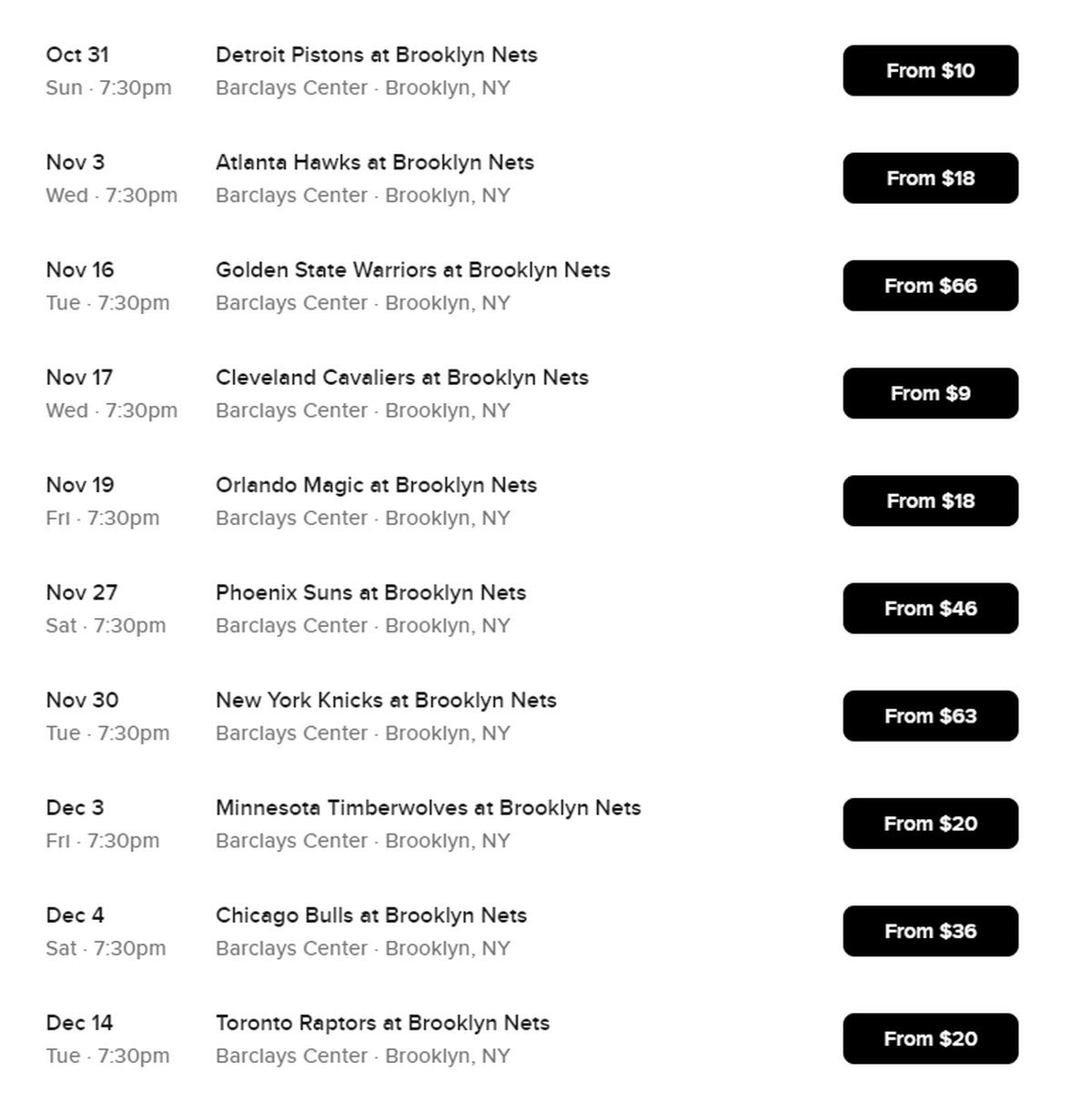 Καλά διαβάσατε! Μπορείτε να παρακολουθήσετε, από κοντά, από το γήπεδο, από το Barclays Center, αγώνες των Νετς με τον Τζέιμς Χάρντεν, τον Κέβιν Ντουράντ, τον Μπλέικ Γκρίφιν, τον Τζο Χάρις, τον Πολ Μίλσαπ, τον ΛαΜάρκους Όλντριτζ με ελάχιστα χρήματα. Αυτή τη στιγμή υπάρχουν εισιτήρια των 10 δολαρίων (!) για την αναμέτρηση με τους Ντιτρόιτ Πίστονς, ενώ μπορεί κάποιος να κλείσει θέση για τον αγώνα με τους Κλίβελαντ Καβαλίερς με 9 δολάρια.