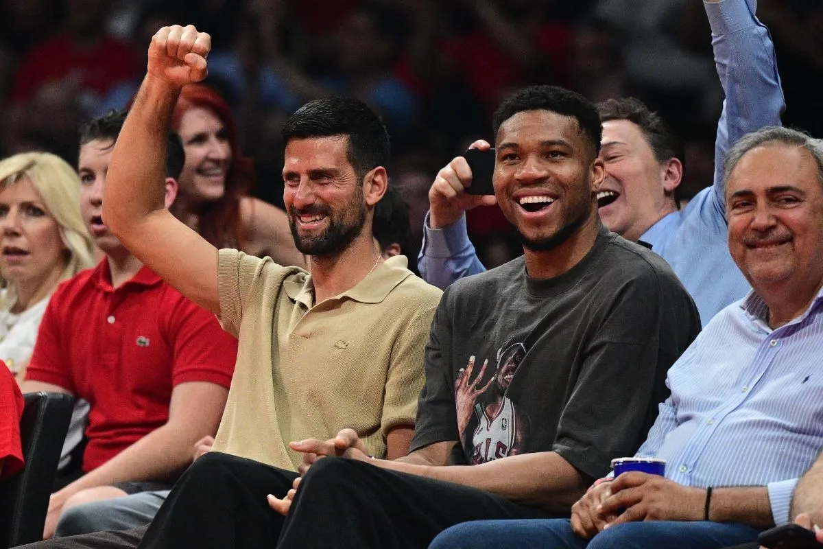 Στις εξέδρες βρέθηκε και ο Νόβακ Τζόκοβιτς, ο οποίος παρακολουθούσε την αναμέτρηση μαζί με τον Γιάννη Αντετοκούνμπο.