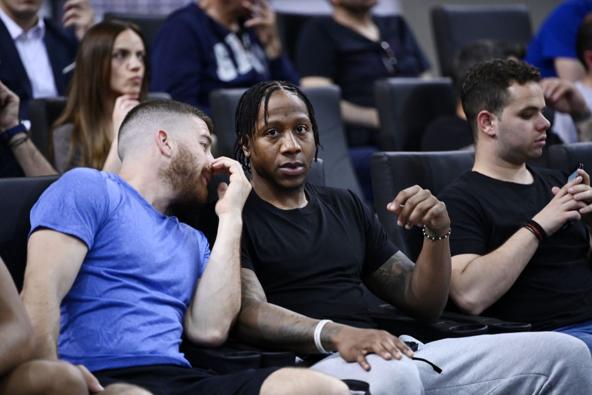 Ο Αμερικανός γκαρντ του Ολυμπιακού πήγε στο γήπεδο για να στηρίξει τον Παναγιώτη Τσάμη, ο οποίος ανήκει στους ερυθρόλευκους και αγωνίζεται με το καθεστώς του διπλού δελτίου στον Τρίτωνα.
