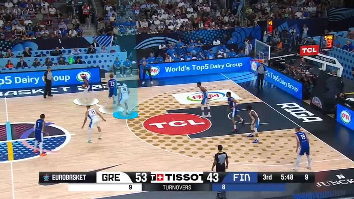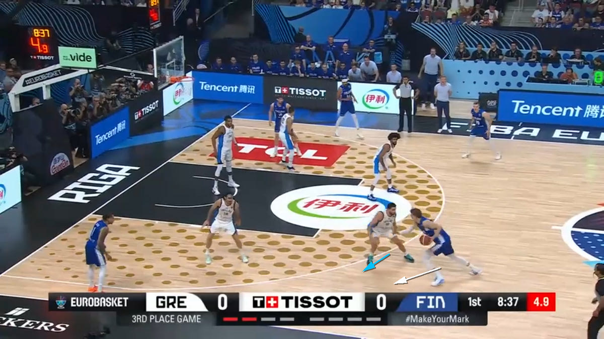 Ο Μάρκανεν τελείωσε το ματς με 19 πόντους με 6/16 σουτ και 10 ριμπάουντ σε 31 λεπτά συμμετοχής. Σύμφωνα με το Hudl Instat, όμως, κόντρα στον Παπανικολάου είχε μόλις 7 πόντους με 3/10 σουτ. Ο αρχηγός της Εθνικής ήταν αυτός που ταίριαζε περισσότερο στο μαρκάρισμα του Μάρκανεν. Είναι πιο γρήγορος από τον Μήτογλου, πιο δυνατός από τον Σαμοντούροβ και πιο έτοιμος σε τακτικό επίπεδο από τον Θανάση Αντετοκούνμπο. Ιδού τρεις φάσεις που δείχνουν το σεμινάριο άμυνας του Παπανικολάου: