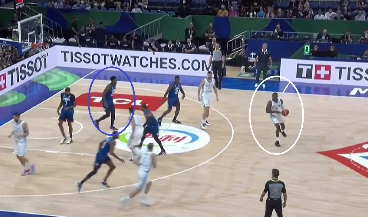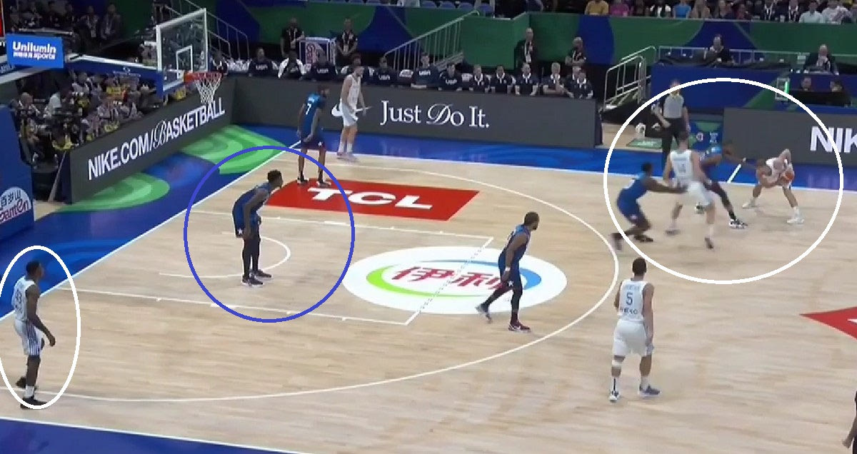 Οι ΗΠΑ χάλασαν τις αποστάσεις της Ελλάδας. Μίκρυναν τους χώρους. Η Εθνική προσαρμόστηκε άμεσα. Έκανε σκρινέρ τον Θανάση Αντετοκούνμπο, τον χρησιμοποίησε σε handoff καταστάσεις (πάσα χέρι με χέρι) για να δώσει επιθέσεις στους γκαρντ της, έδωσε ακόμα και επιθέσεις στον φόργουορντ των Μπακς.