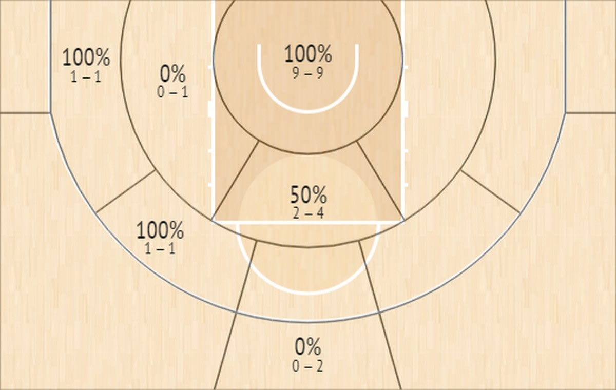 Ο Γιάννης είναι στα καλύτερά του με την μπάλα στα χέρια. Στους Μπακς παίζει συχνά το Pick and Roll ως χειριστής με τον Μπρουκ Λόπεζ ή τον Μπόμπι Πόρτις σε ρόλο σκρινέρ. Ο λόγος, σαφής: Είναι σχεδόν αδύνατο για οποιοδήποτε παίκτη – πόσο δε μάλλον για έναν σέντερ – να αντιμετωπίσει έναν τύπο με ύψος 2.11 μέτρα και τρομερά αθλητικά προσόντα και ευλυγισία να έρχεται κατά πάνω του με πλήρη ταχύτητα. Κόντρα στην Ουκρανία μπόρεσε να κάνει ό,τι θέλει με την μπάλα, με το δε Shot Chart του να είναι ανεπανάληπτο: