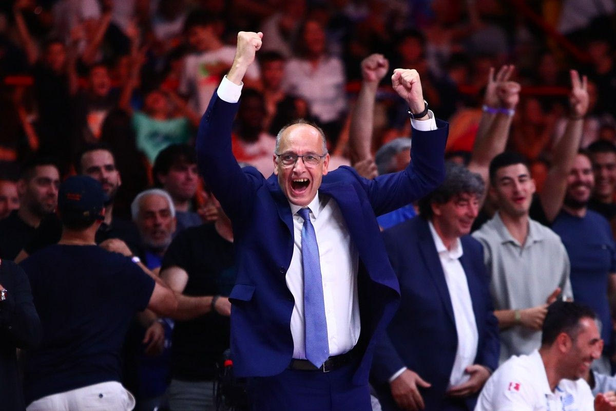 Ο πρόεδρος της ΕΟΚ, Βαγγέλης Λιόλιος, ξέσπασε σε πανηγυρισμούς μετά από το θεαματικό buzzer-beater τρίποντο του Βασίλη Τολιόπουλου.