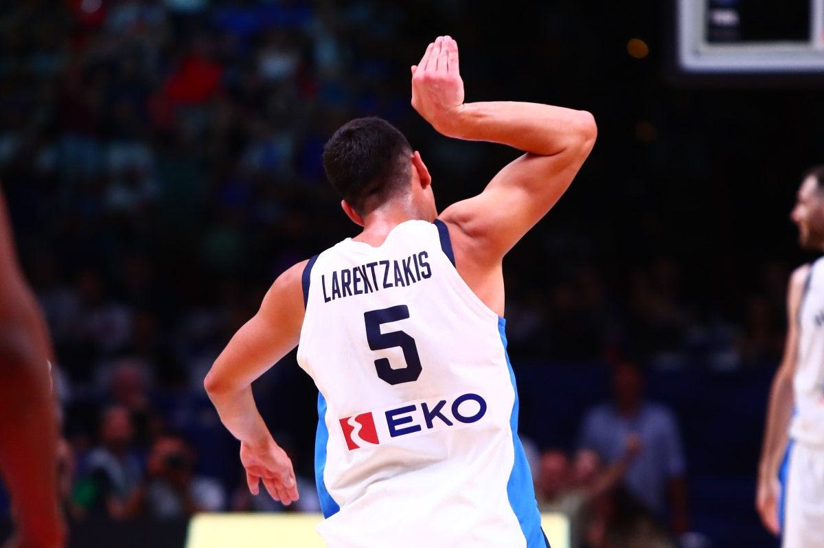 Ο Γιαννούλης Λαρεντζάκης έγινε κάτοχος της μπάλας, έτρεξε στον αιφνιδιασμό, έπιασε ανοργάνωτη την άμυνα της Σλοβενίας και ευστόχησε από την κορυφή για τρεις πόντους, στο παιχνίδι της Ελλάδας με την ομάδα του Λούκα Ντόντσιτς.