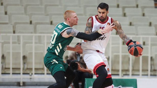 Ο Γιώργος Πρίντεζης κόντρα στον Άαρον Γουάιτ στο Παναθηναϊκός - Ολυμπιακός για την EuroLeague eurokinissi