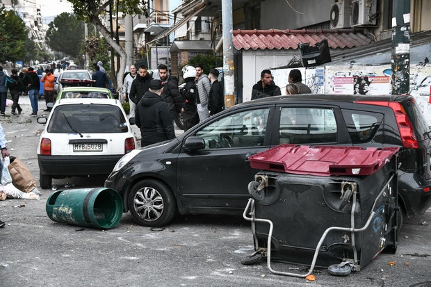 Ένα αυτοκίνητο κάηκε κι άλλα δύο υπέστησαν σοβαρές ζημιές, ενώ η αστυνομία έχει προχωρήσει μέχρι τώρα σε 16 προσαγωγές.