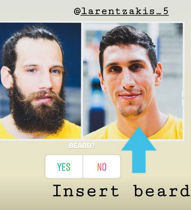Το απόγευμα του Σαββάτου οι δύο αθλητές συμμετείχαν στη Media Day που έγινε στο ΟΑΚΑ, έβγαλαν τις σχετικές φωτογραφίες, κάποιες από τις οποίες είδε ο Γιαννόπουλος που δεν άφησε την ευκαιρία να χαθεί. “Εδεσε” δύο εικόνες και τις ανέβασε στο προφίλ του στο Instagram για να κάνει πλάκα με τα γένια του Λαρεντζάκη που… δεν υπάρχουν!