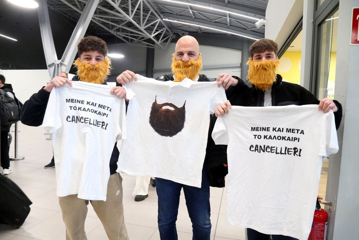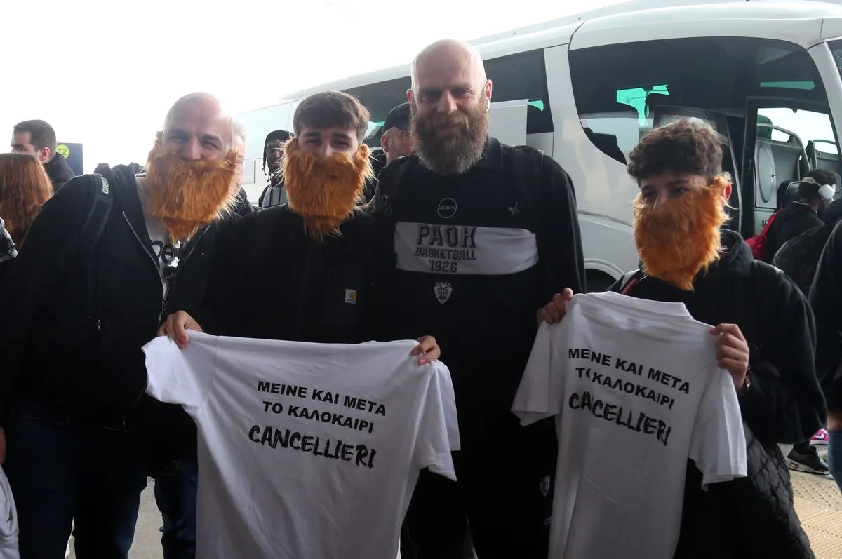 Η επική ιδέα των φίλων του ΠΑΟΚ να ντυθούν Καντσελιέρι και τα χαμόγελα του Ιταλού τεχνικού πριν την αναχώρηση για το Μπιλμπάο ενόψει του πρώτου τελικού του FIBA Europe Cup (16/4, 21:00, ΕΡΤ3, LIVE από το SPORT24) .