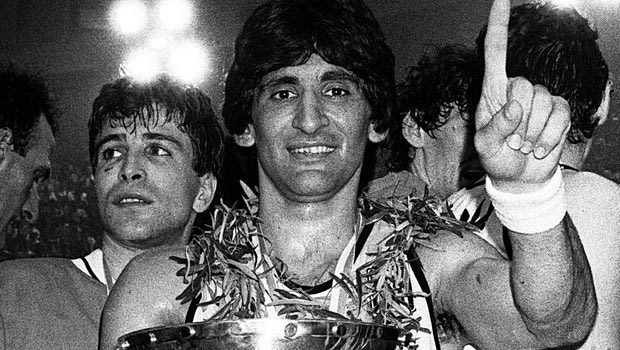 Ο Παναγιώτης Γιαννάκης πανηγυρίζει στο Ευρωμπάσκετ 1987 Eurokinissi