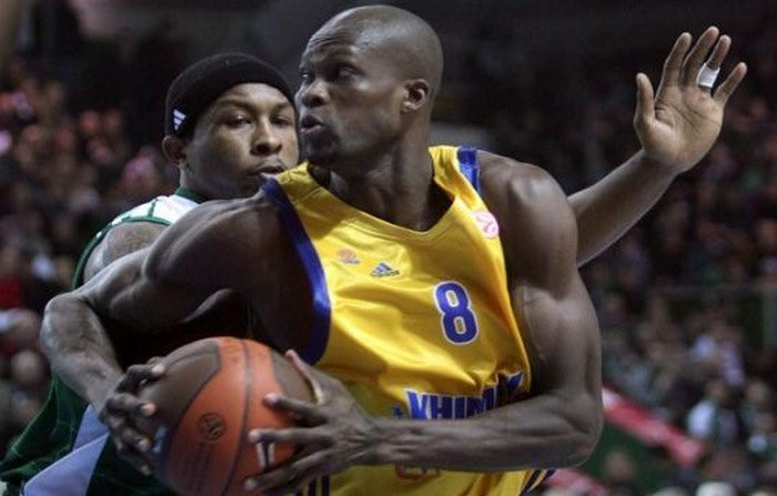 Zalgiris Kaunas's Travis Watson (L) vies with Khimki's Benjamin Eze (R) during their Euroleague group A basketball match in Kaunas on November 18, 2010. AFP PHOTO / PETRAS MALUKAS (Photo credit should read PETRAS MALUKAS/AFP/Getty Images)