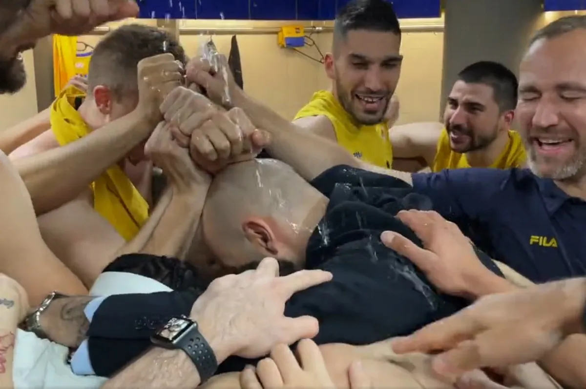 Επίθεση αγάπης στον Βασίλη Σπανούλη στα αποδυτήρια του Περιστερίου