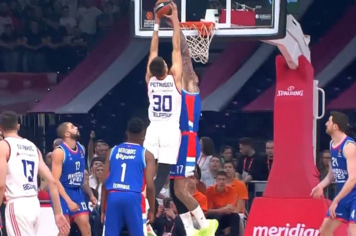 Στο τρίτο λεπτό της αναμέτρησης του Ερυθρού Αστέρα με την Αναντολού Εφές στο Βελιγράδι, ο Φίλιπ Πετρούσεβ επιχείρησε να δοκιμάσει πόστερ κάρφωμα μπροστά στον Βενσάν Πουαριέ. Ο Γάλλος ύψωσε τα χέρια και τον “κατέβασε” με εμφατικό μπλοκ.