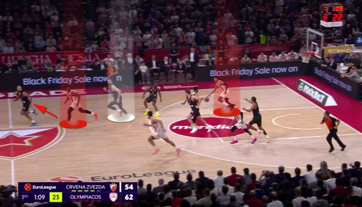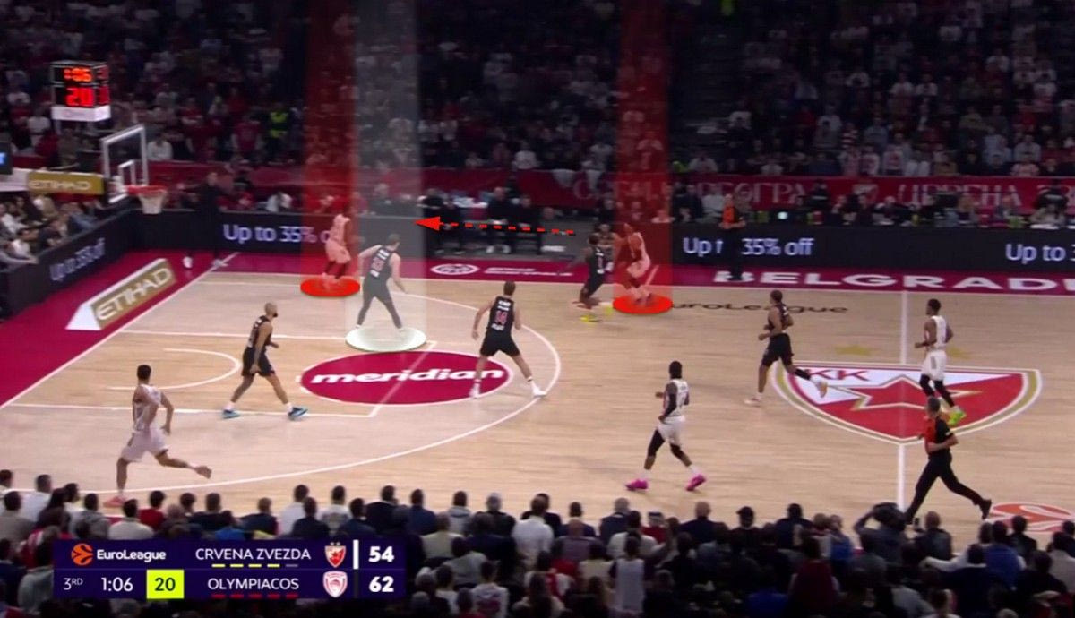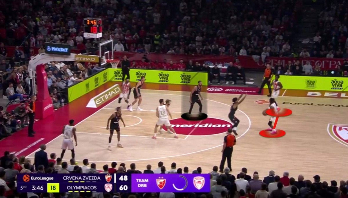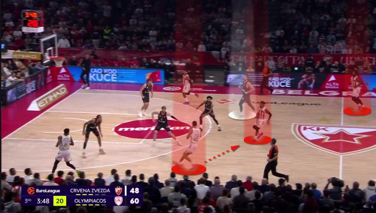 Ο Ολυμπιακός έδειχνε να ελέγχει το παιχνίδι στο Βελιγράδι, ξεφεύγοντας με 48-60, με όλα να πηγαίνουν όπως τα ήθελε. Τότε ήταν που ο Ερυθρός Αστέρας έριξε στο παρκέ μία πεντάδα που έμελλε να φέρει τούμπα το ματς. Μία γρήγορη πεντάδα για την ακρίβεια, που θα άλλαζε τα δεδομένα, με τον Σέμι Οτζελέγιε σε θέση σέντερ.